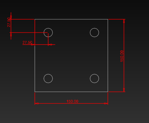 Infästningsbrickor med måtten 150x150 och 4st Ø18mm hål.